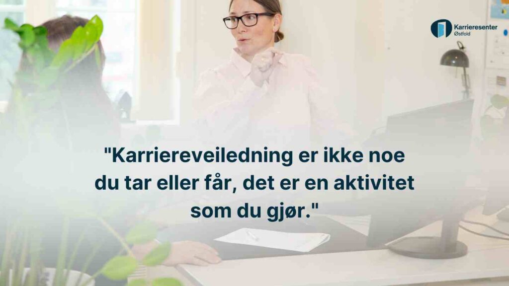 Vi ved Karrieresenter Østfold har som mål å gjøre mennesker i bedre stand til å håndtere overganger og til å ta meningsfulle valg knyttet til utdanning, læring og arbeid gjennom livet. Så hva er egentlig karriereveiledning? Med karriereveiledning ønsker vi å gi deg som veisøker mulighet til utforskning av din situasjon, ønsker og muligheter, samt støtte til handling, valg og samfunnsdeltakelse.